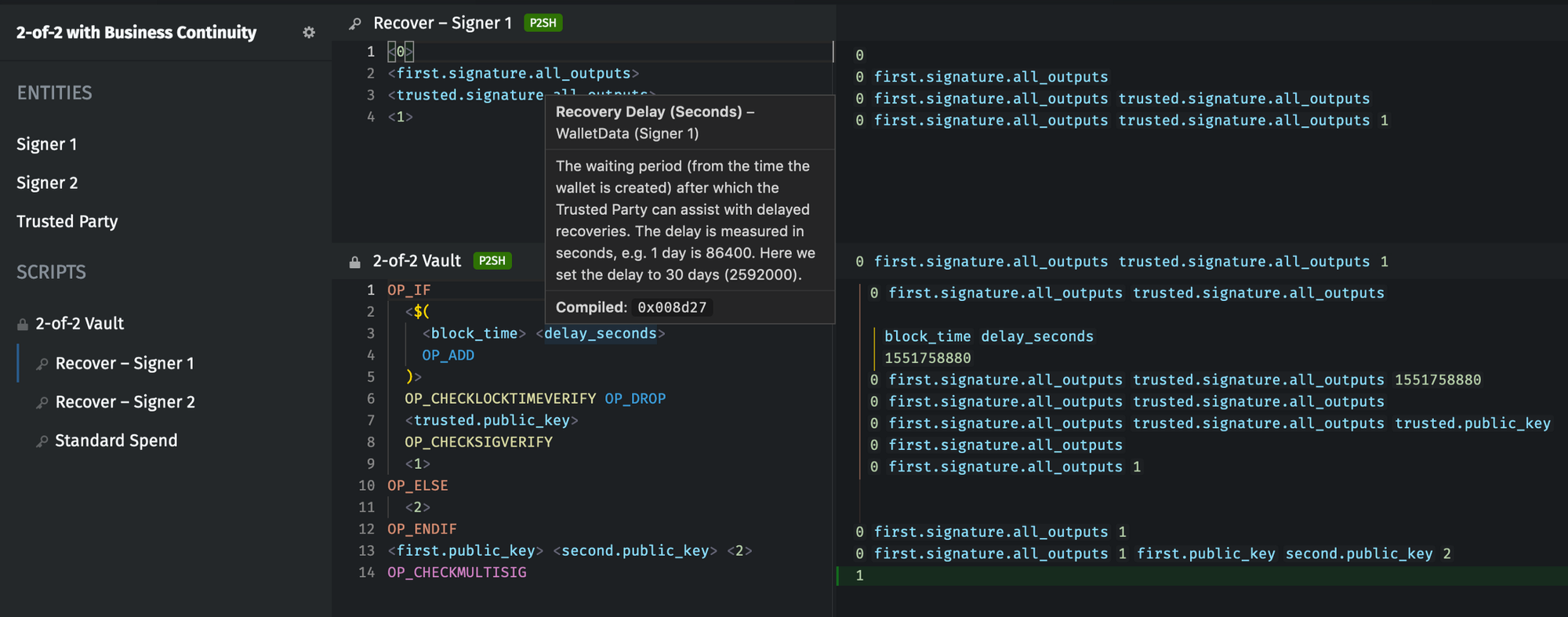 delay_seconds to the block time (at wallet creation) to arrive at the value used in this locking script’s OP_CHECKLOCKTIMEVERIFY operation.Getting Started